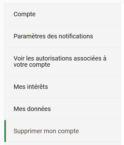 3 - Cliquez sur "Supprimer mon compte" depuis l'interface de paramètrage :