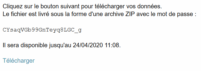 Je souhaite télécharger mes données :