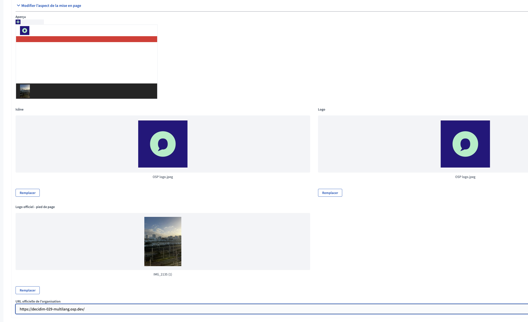 - L'URL officiel de la plateforme : est l'URL vers laquelle le logo officiel du pied de page redirige.