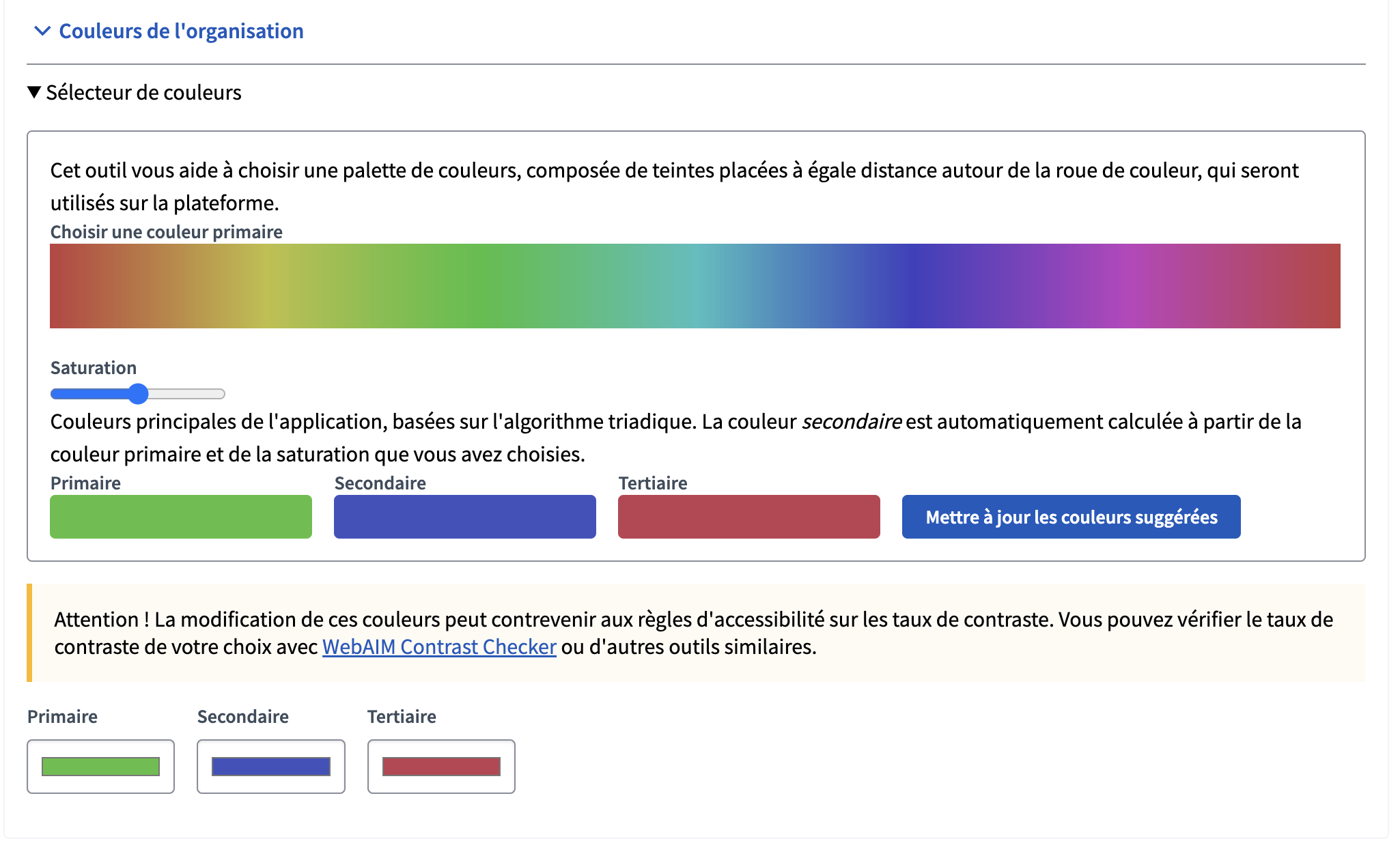 Ce champ permet de choisir les couleurs pour l'organisation.