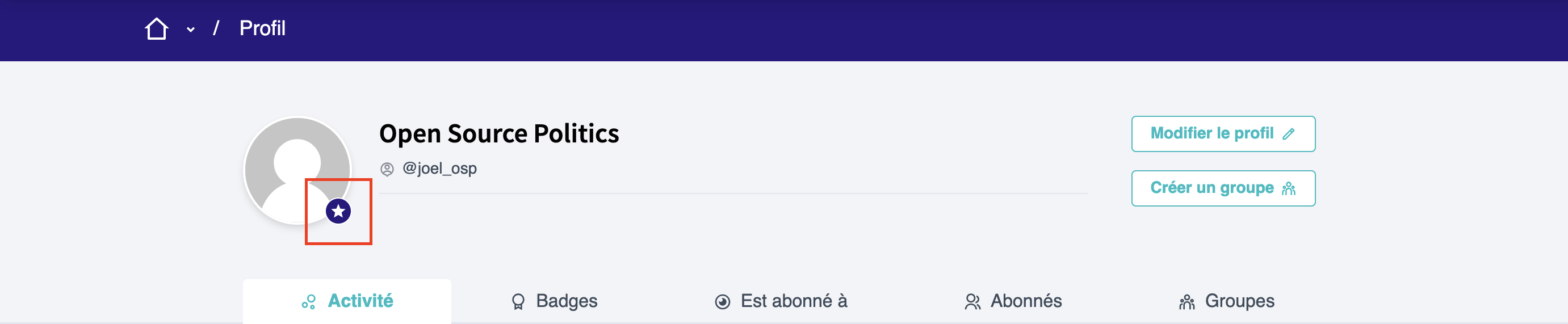 Une fois la personne validée, un badge est affiché à côté de son avatar dans son profil public.