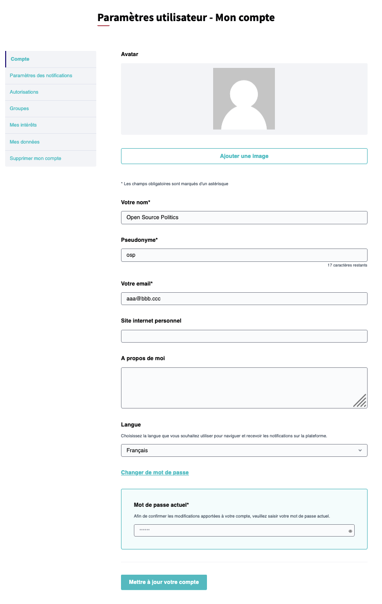 Depuis cette même page, cette même personne peut également mettre à jour son profil :