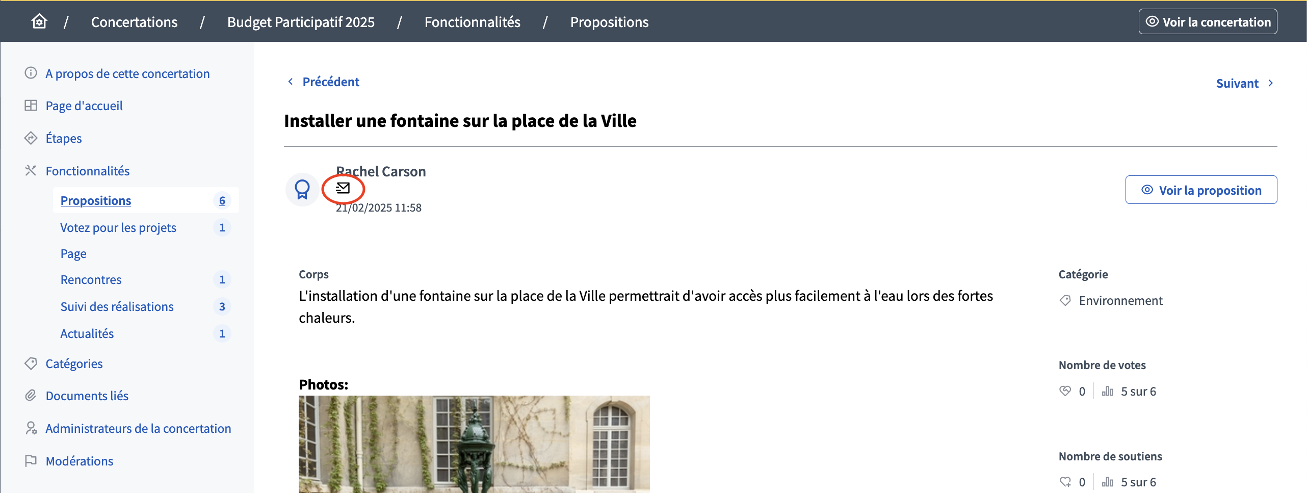 En tant qu'administrateur·ice, vous pouvez non seulement contacter les personnes inscrites sur la plateforme via l'interface publique (voir l'article Utiliser la messagerie interne), mais également les contacter via le back-office.