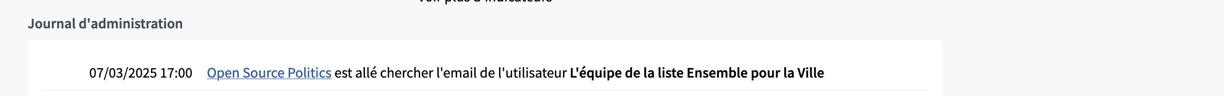Cette action déclenche la création d'une ligne dans le journal d'administration, à des fins de traçabilité et de protection des données des personnes inscrites sur la plateforme.