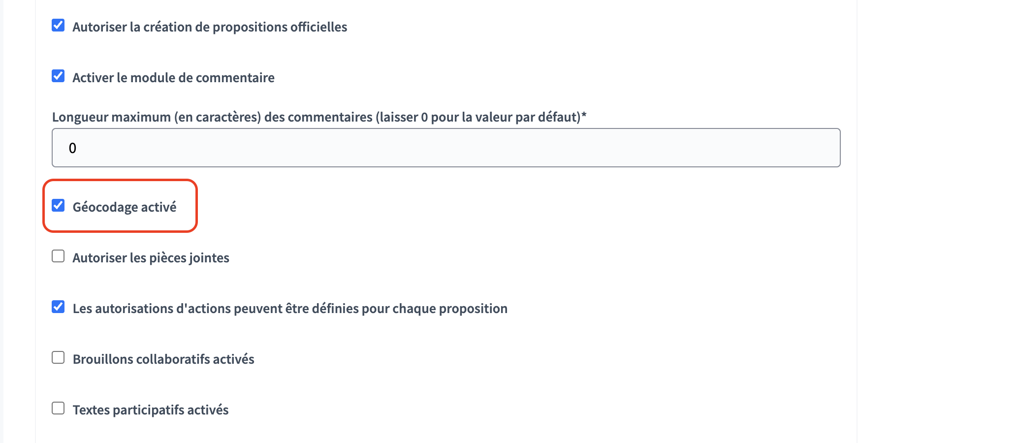 En activant le géocodage, un champ adresse apparaît lors la troisième étape du dépôt de proposition où l'utilisateur·ice pourra renseigner une adresse. C'est sur la base de cette adresse que la proposition est positionnée sur la carte.