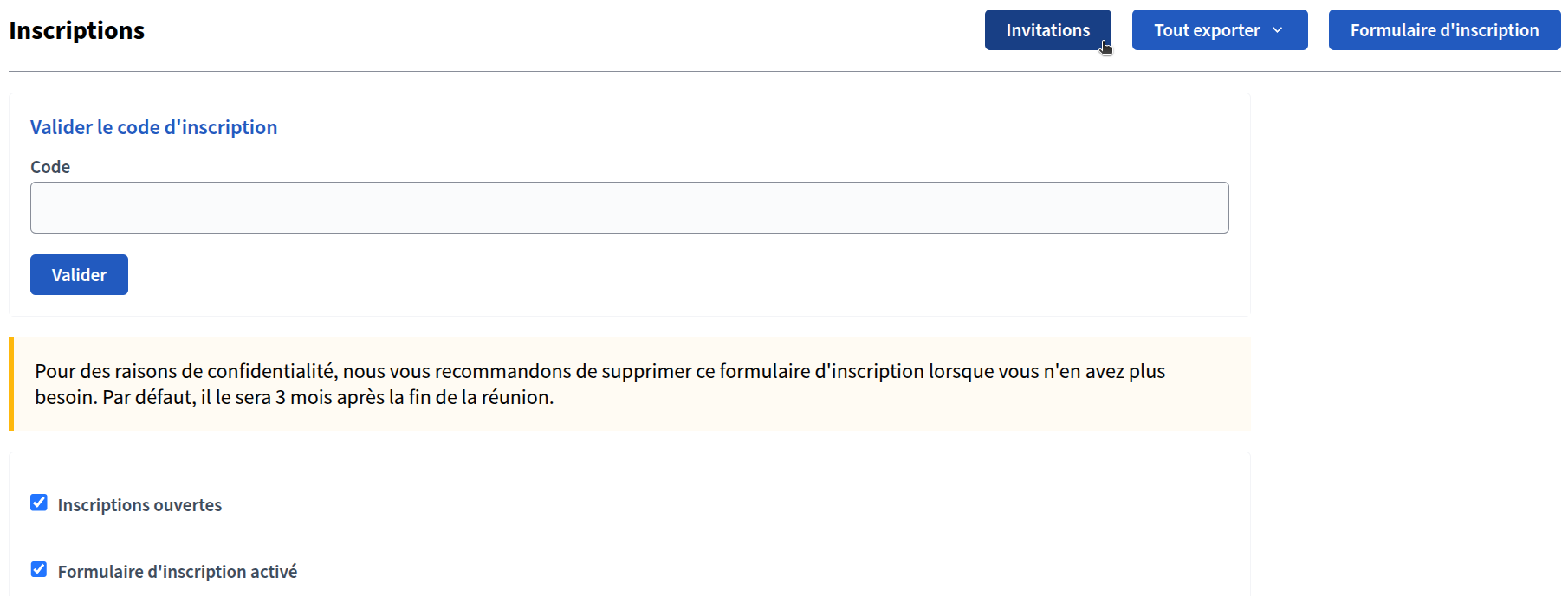 Activer et gérer les inscriptions