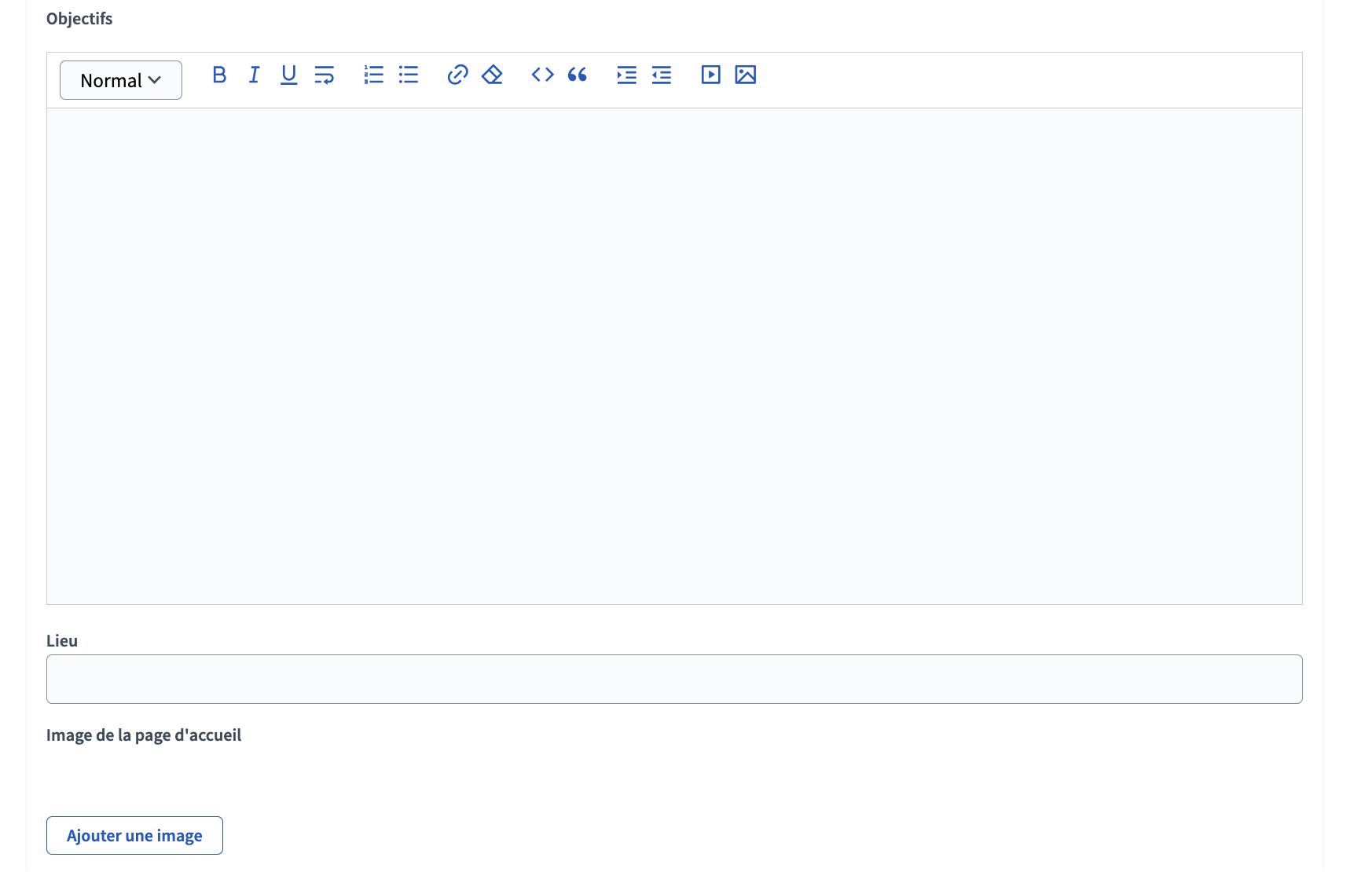 Concernant la brève description, il est important de rédiger un texte assez court et de tenir compte de sa présence dès la page d’accueil. C’est la deuxième information que l’utilisateur·ice verra après le titre de la conférence. Il faut donc veiller à ce que le contenu soit pertinent et assez général.