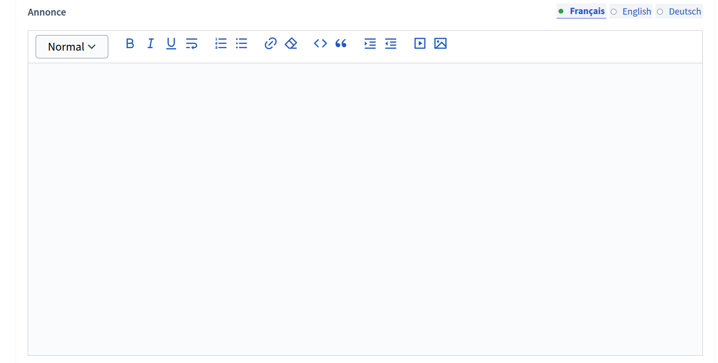 - Annonce : texte d'aide ou d'information visible par les utilisateur·rices sur l'index des propositions