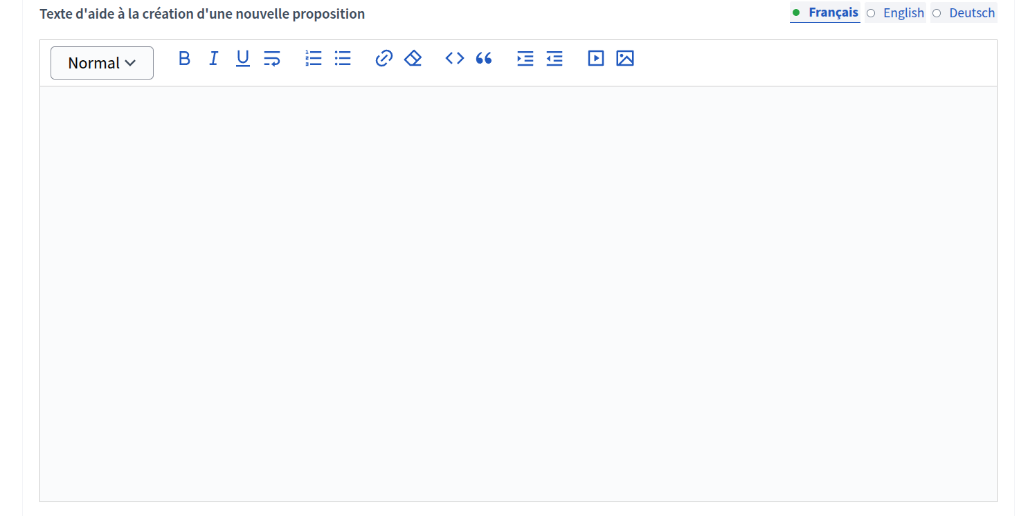- Texte d'aide à l'étape Publier d'une nouvelle proposition