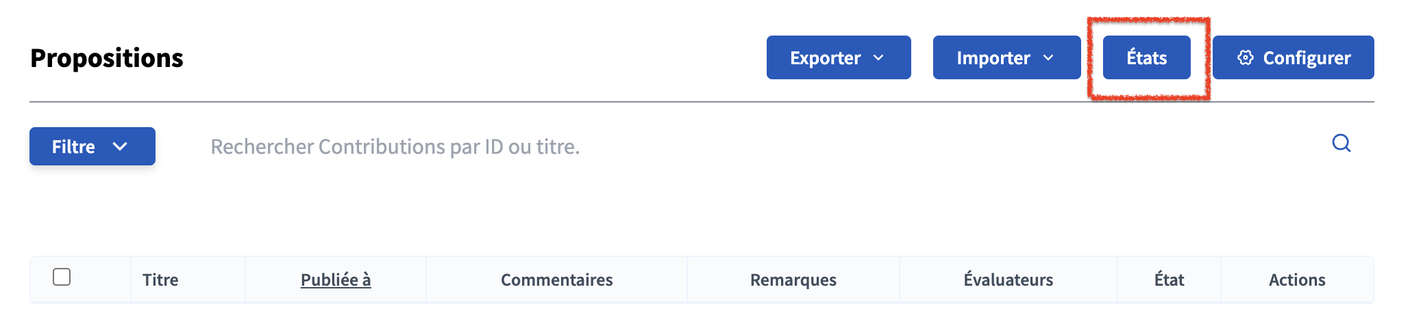 Les états peuvent être adaptés aux besoins de votre organisation en cliquant sur le bouton « Etats » .