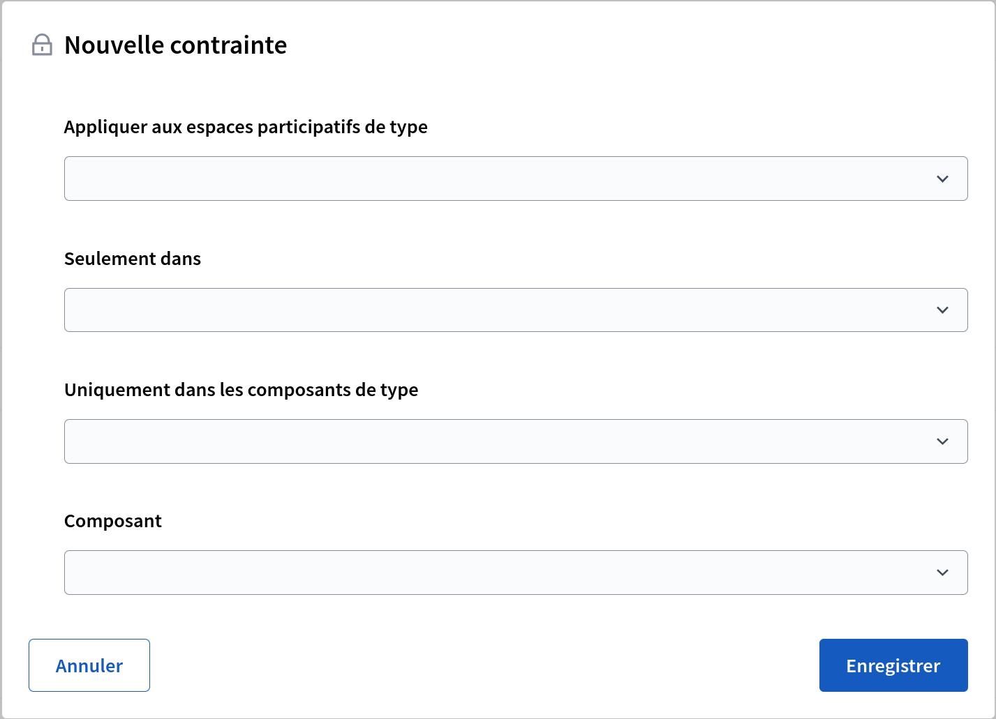 Le lien “ajouter une contrainte d'application” permet de cibler un espace ou une fonctionnalité en particulier dans lesquels cette règle s'appliquera.