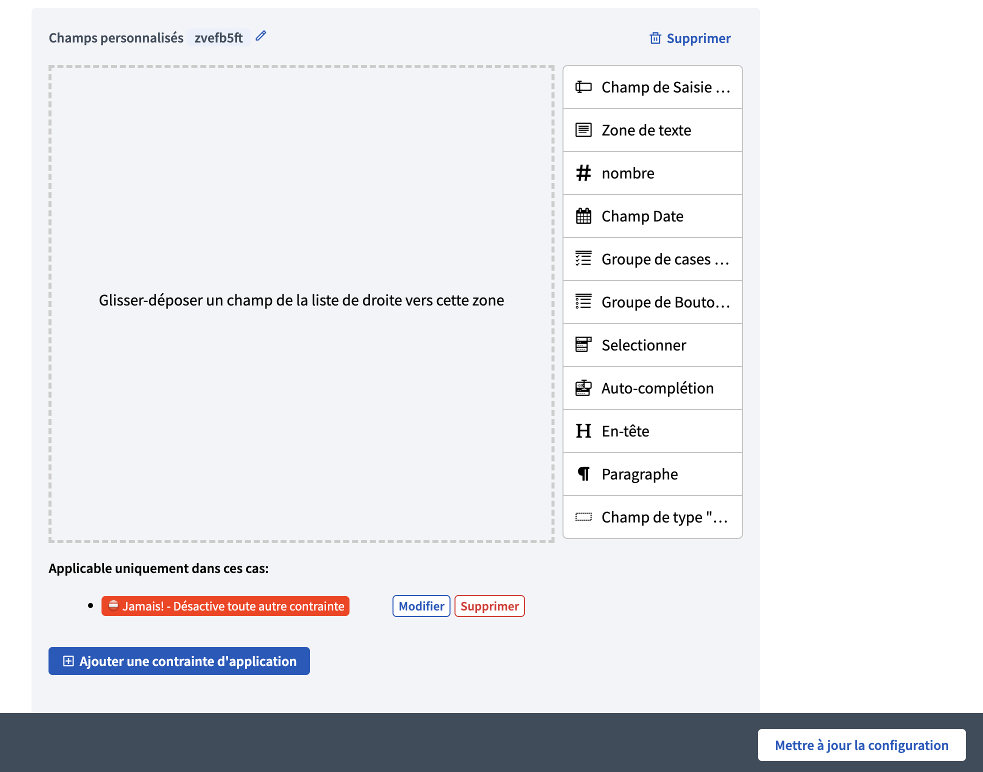 - Le supprimer : pour supprimer un champ, survolez-le et cliquer sur l'icône ❌.