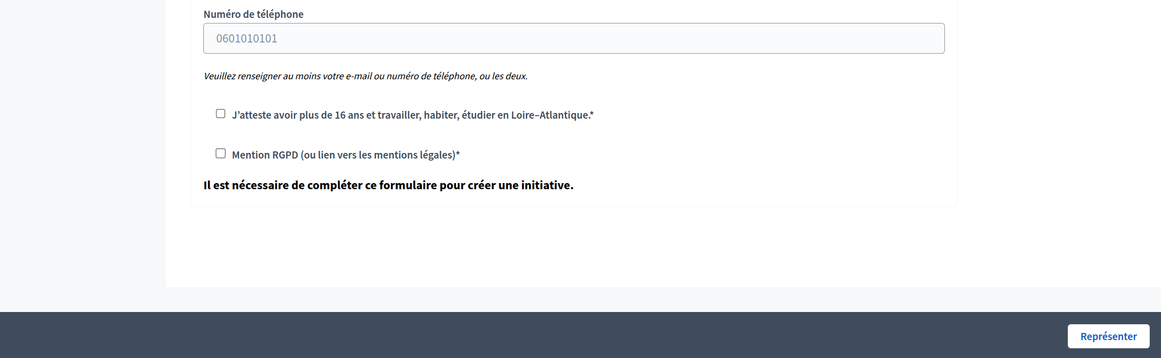 - Numéro unique : cela peut être le numéro d’un formulaire, de sa pièce d’identité, etc. Il est primordial de noter en dehors de la plateforme quel numéro unique est associé à chaque utilisateur représenté si vous voulez pouvoir représenter de nouveau cet·te utilisateur·ice par la suite (explication ci-dessous).