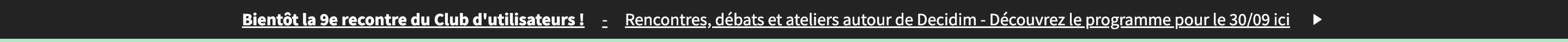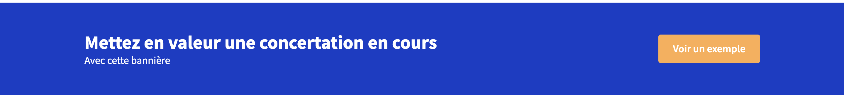 Cette bannière secondaire peut se placer entre la description et la liste des concertations en cours. Elle est très pratique pour mettre en avant une étape, un événement ou un contenu important de la plateforme.