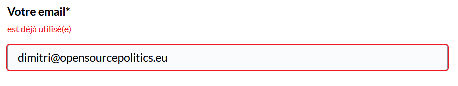 Vous vous êtes sûrement déjà créé un compte avec cette adresse, tentez de vous connecter en cliquant sur la bouton "Se connecter" en haut à droite de la page !