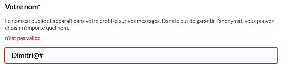 Votre identifiant ne doit pas contenir d’espace ni de caractère spécial (ex : "!" ou "%" liste complète).