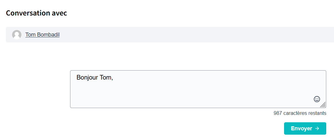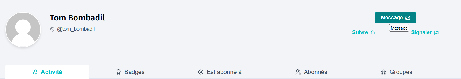 Cliquez sur le bouton "Message" pour ouvrir le fil d'échange. Vous pouvez alors envoyer un message à l'utilisateur·ice !