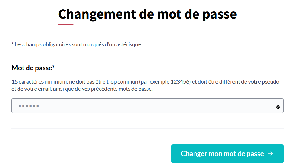 AprĂšs redirection, la plateforme va vous demander un nouveau mot de passe.