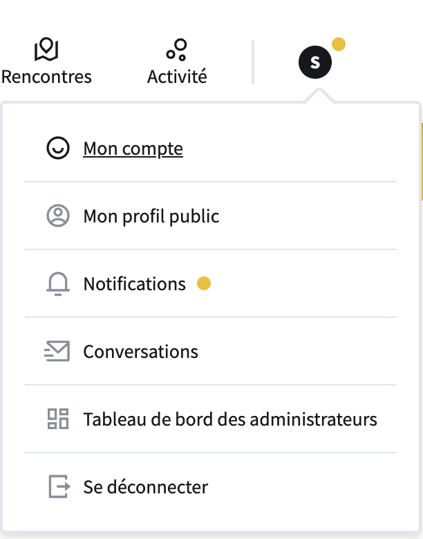 Pour paramétrer les notifications de votre compte utilisateur, rendez-vous sur la page "Mon compte", en passant la souris sur votre nom situé dans la barre de navigation.