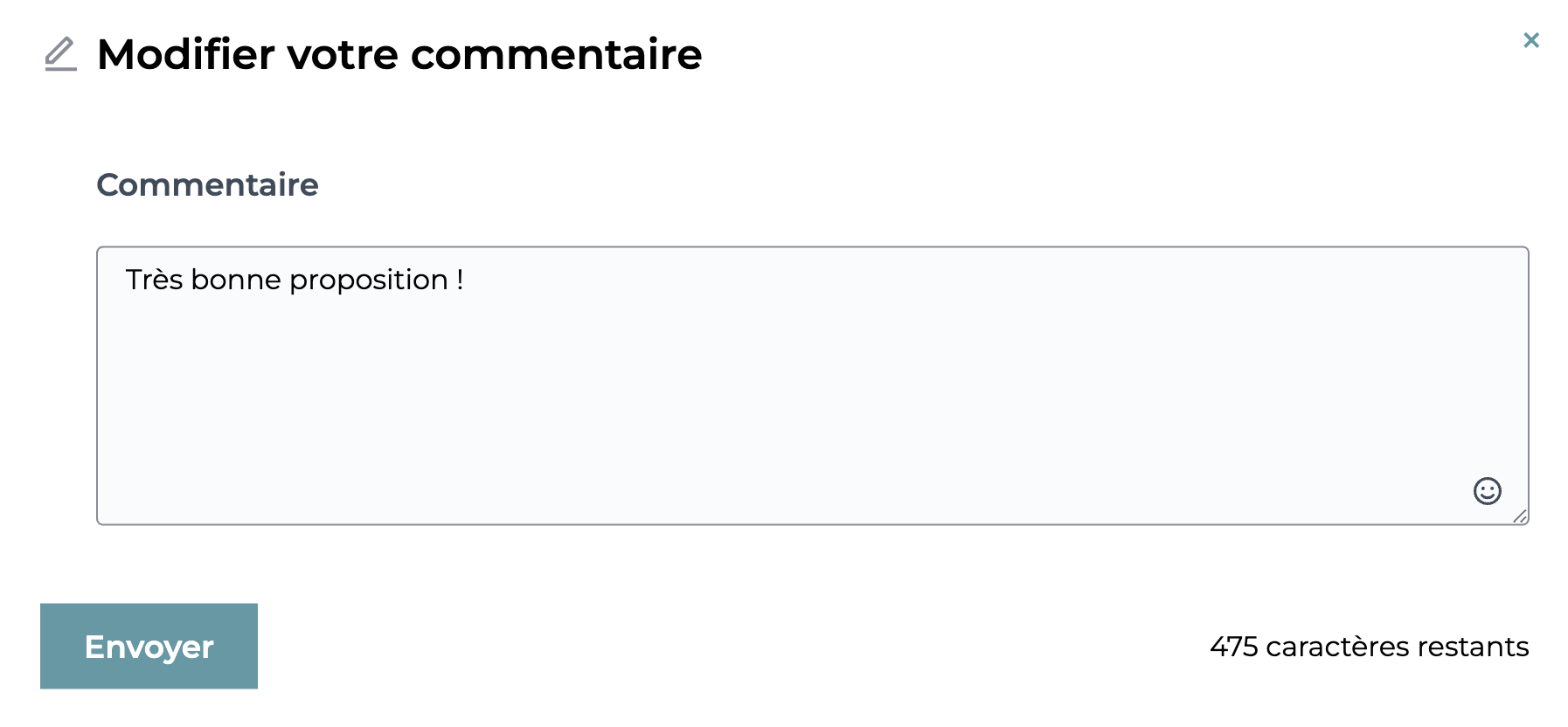 - Il est également possible d'ajouter des emojis dans les commentaires. Pour ce faire, cliquez sur l'icône visage en bas à droite du champ texte et choisissez l'émoji que vous souhaitez intégrer.