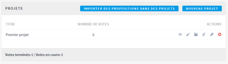 - Gérer les autorisations (icône "Autorisations") : permet de spécifier les personnes pouvant voter pour les projets.